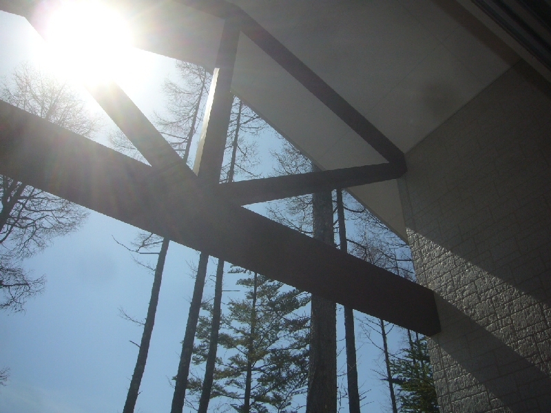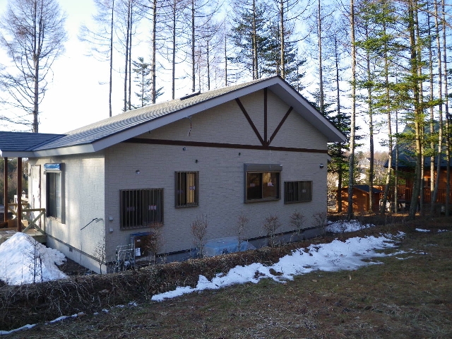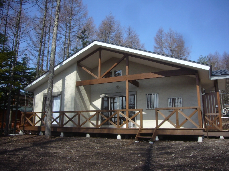 軽井沢の平屋建て別荘です。大屋根の下の大きなウッドデッキで午後の紅茶を楽しみながらの読書。浅間山麓の大自然に囲まれた空間は忙しい毎日を忘れさせてくれます。