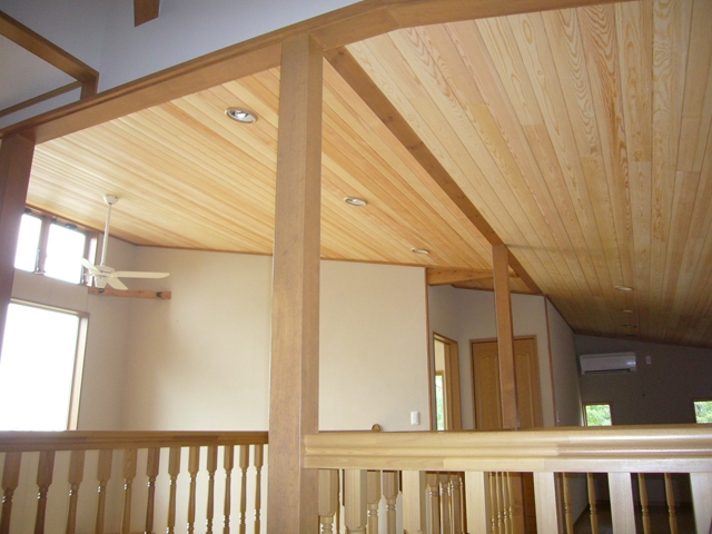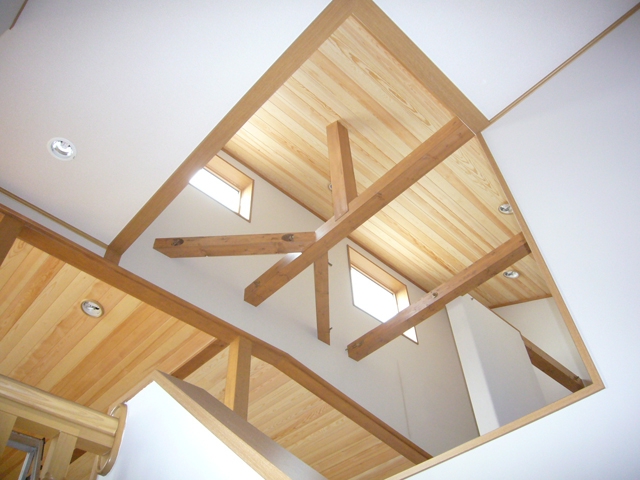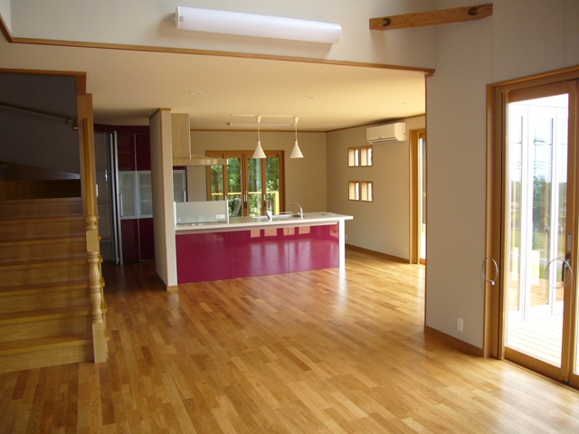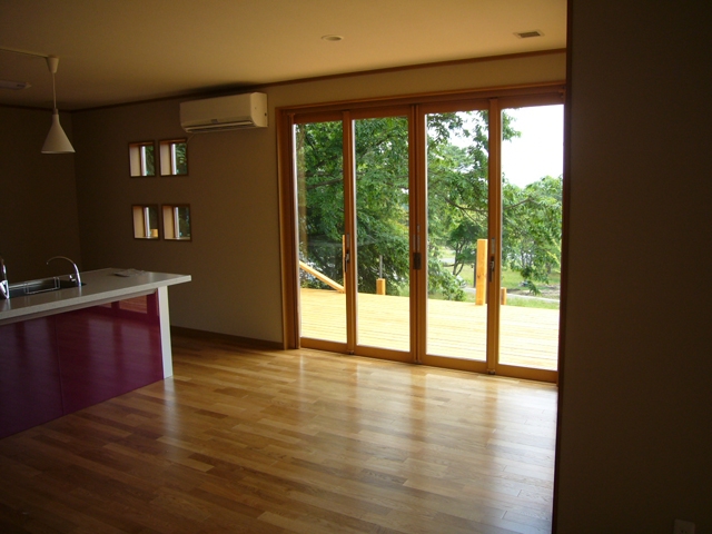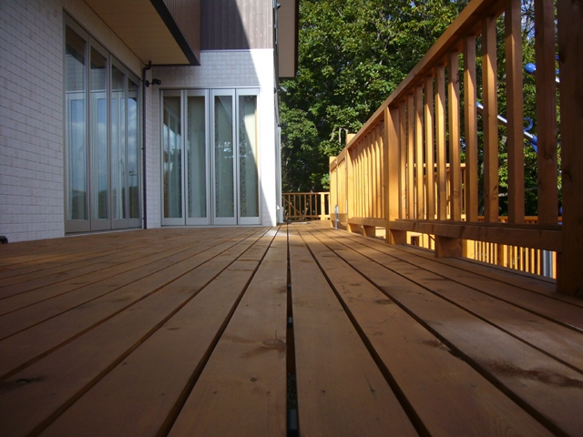 小高い丘の上という立地条件を余すことなく利用しました。光と風をテーマにしたこの建物の内部は一日中自然光がふりそそぐ様、また、さわやかな風を感じながら快適に住まう、施主様を想像しながら設計しました。大きなウッドデッキから眺める景色は、忙しい毎日を時より忘れさせてくれます。